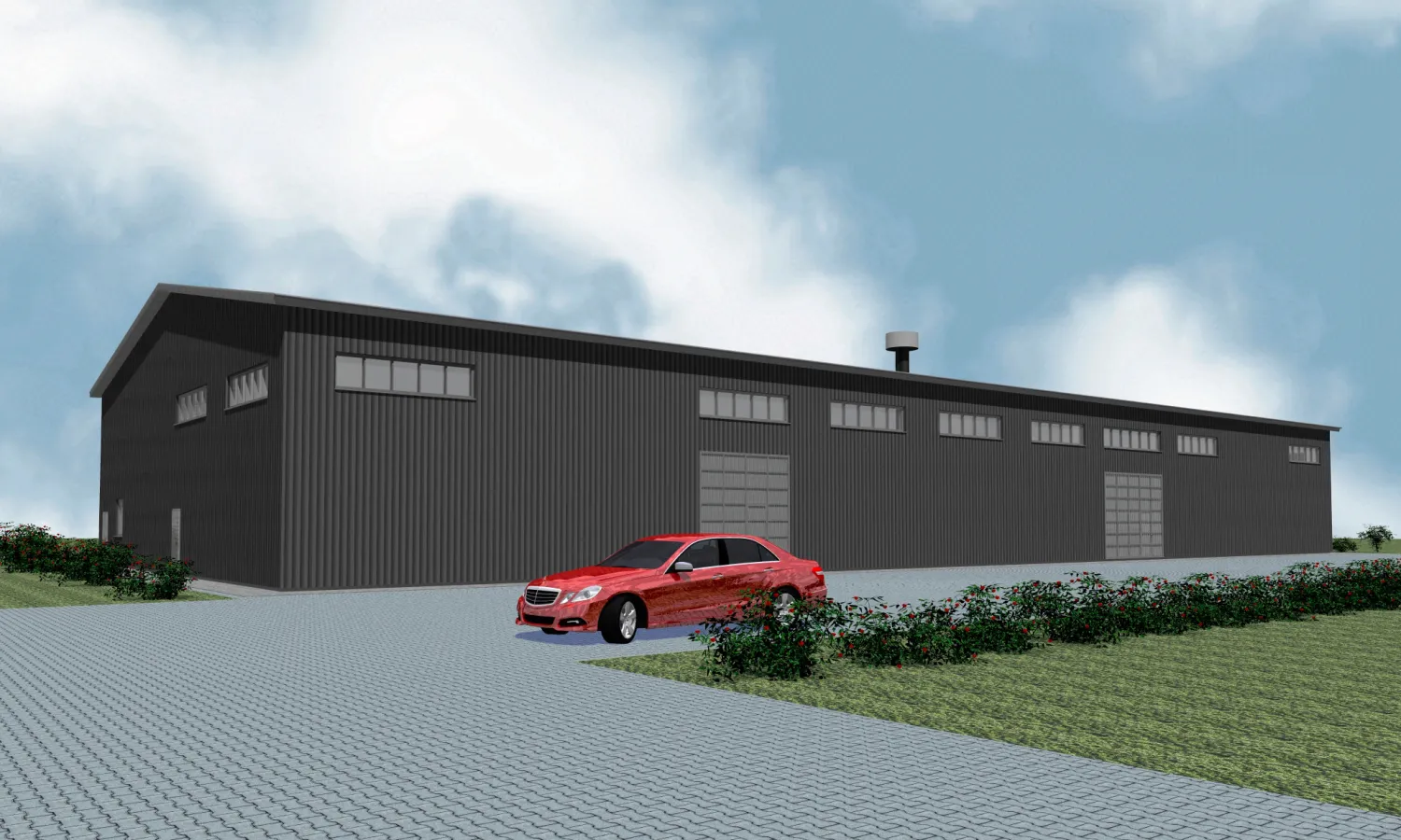 • 04.МонтажГотовый комплект доставляется на ваш участок. Наша профессиональная бригада оперативно собирает стальной каркас, монтирует кровлю, стены, перекрытия.